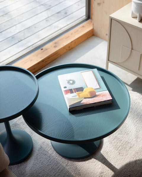 Jason 系列的桌子與衣帽架由粉體塗裝金屬與橡木貼皮製成,並以相同的霧面色彩收尾。這種無縫結合呈現出和諧的外觀。然而,當陽光灑落,家具表面的質感反差被突顯時,則展現出一種俏皮的效果。再搭配柔和的圓潤線條,正好勾勒出令人難以抗拒的設計美感。